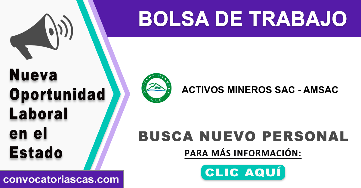 Convocatorias de trabajo ACTIVOS MINEROS - AMSAC CAS 2025 - Empleos en el Sector Público