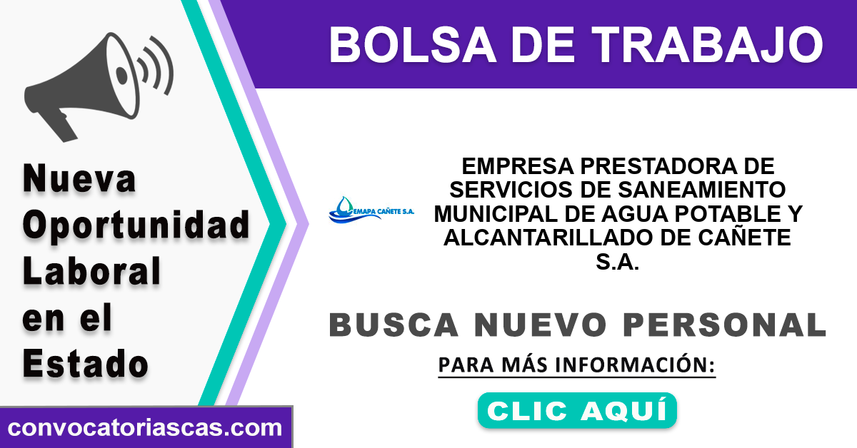 Convocatorias de trabajo EPS EMAPA CAÑETE S.A. CAS 2025 - Empleos en el Sector Público
