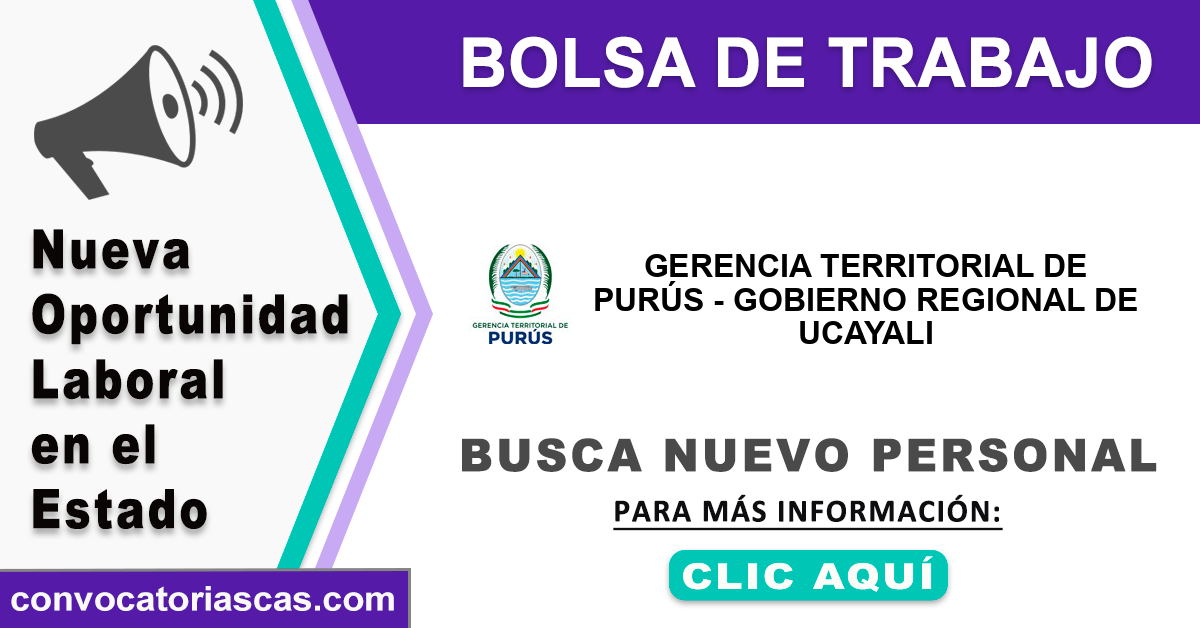 En esta página web difundiremos los procesos de selección de personal bajo la modalidad de Contratación Administrativa de Servicios(CAS) temporal o por suplencia llamados a concurso público por: "GERENCIA TERRITORIAL DE PURÚS - GOBIERNO REGIONAL DE UCAYALI".