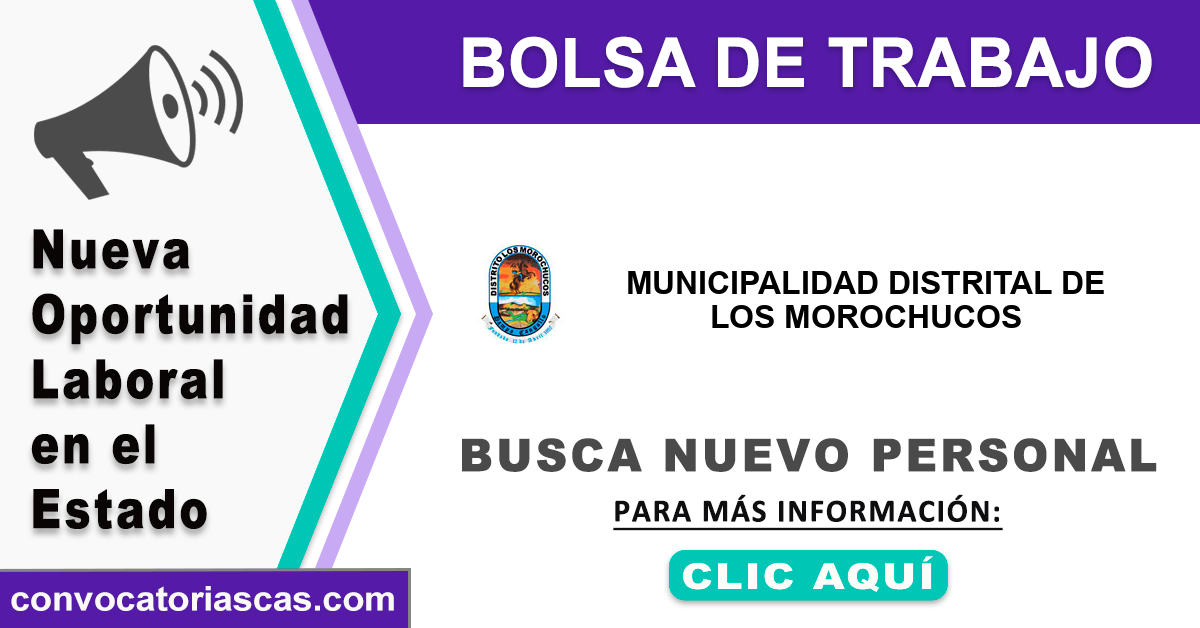 😀 Hay 14 ofertas de empleo para integrar nuevo personal a MUNICIPALIDAD DE LOS MOROCHUCOS mediante un proceso de selección CAS.
