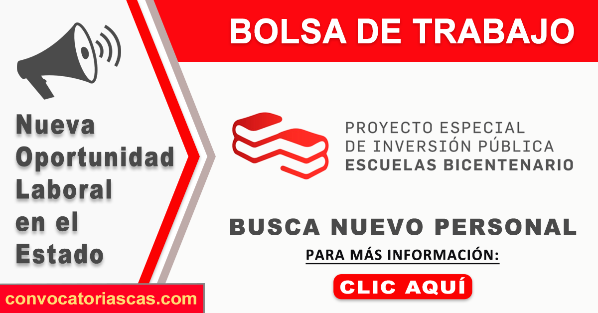 Convocatorias de trabajo PEIP ESCUELAS BICENTENARIO CAS 2026 - Empleos en el Sector Público